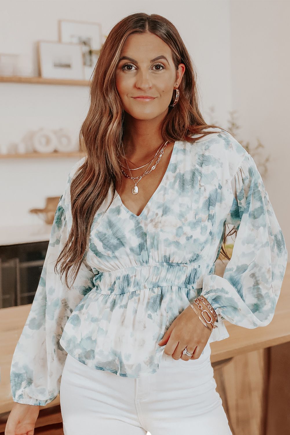 • Our V-Neck Teal Printed Peplum Top is just what your closet needs for the coming season