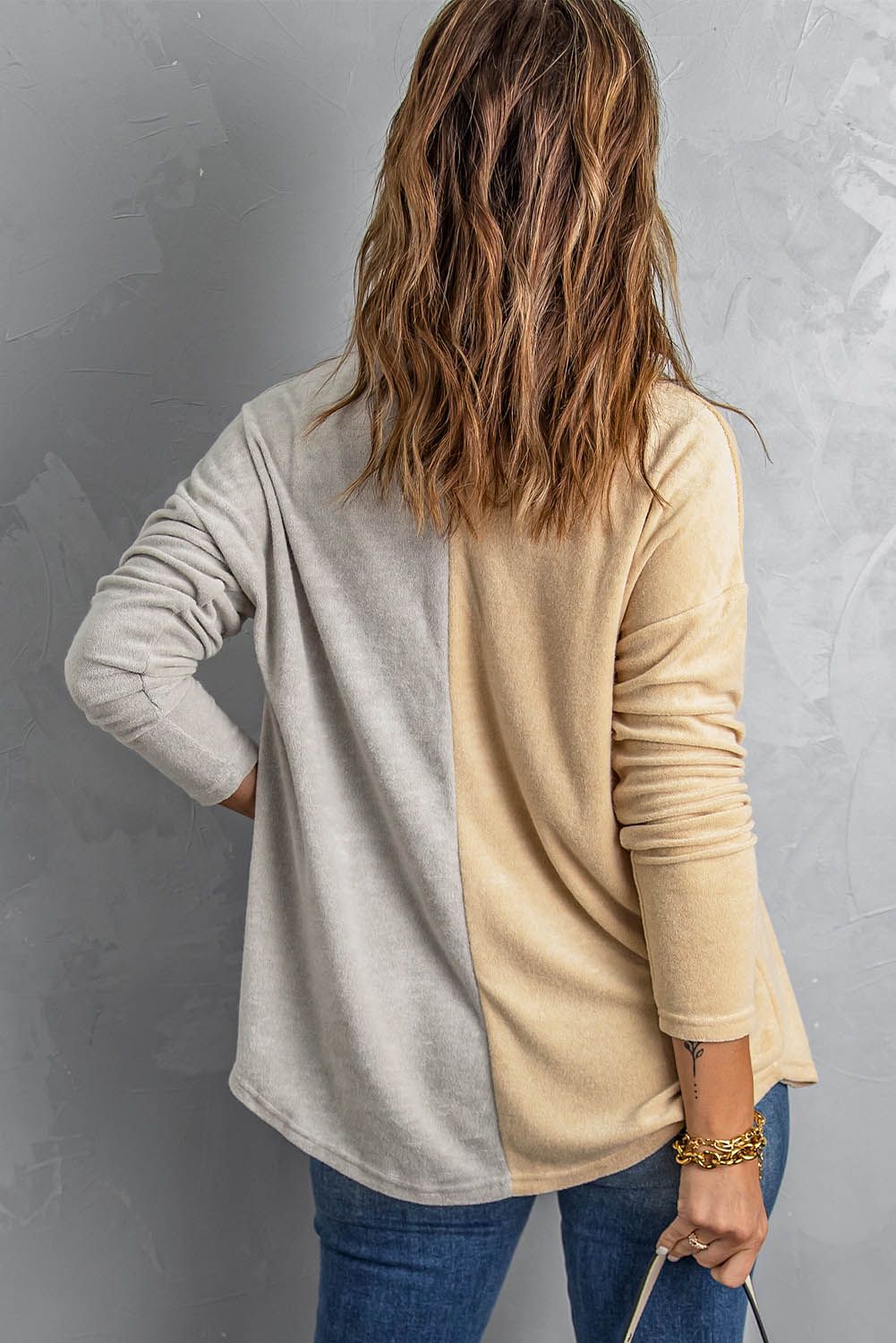 Gray Colorblock Fleece Pockets Buttoned Shirt
